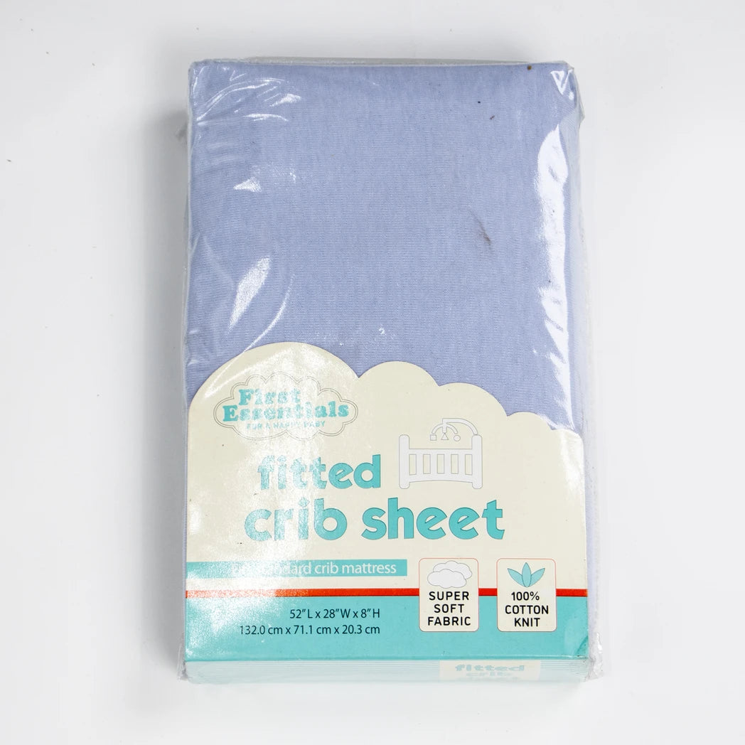 The First Essentials fitted crib sheet has elastic all around. Made from super-soft 100% cotton knit for a healthier and sound sleep.